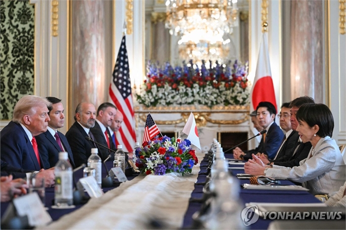 도널드 트럼프 미국 대통령은 28일 미일관계에 대해 "가장 강력한 수준의 동맹"이라고 밝혔다.아시아 순방 일정으로 일본을 방문 중인 트럼프 대통령은 이날 도쿄에서 다카이치 사나에 일본 총리와 진행한 첫 정상회담 모두발언에서 "무슨 일이든 내가 일본을 도울 수 있다면, 우리가 거기 있을 것"이라며 이같이 말했다. 트럼프 대